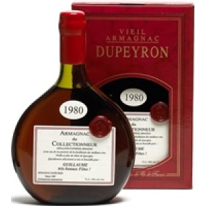 Armagnac Dupeyron Millesime 1980 face parte dintr-o colectie ampla de armagnace, care dateaza inca de la 1850. Aceste distilate reprezinta armagnac dintr-un singur butoi, fiind produse in vastele pivnite ale resedintei Dupeyron din Condom, in inima regiunii Armagnac. Armagnac Dupeyron Millesime 1980 este un cadou perfect pentru a celebra diverse evenimente.