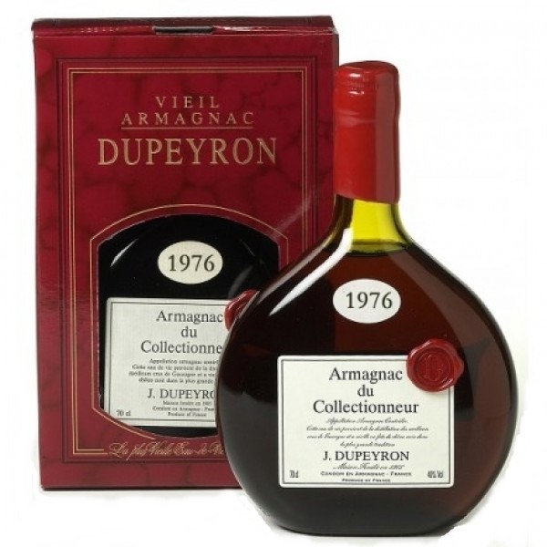 Armagnac Dupeyron Millesime 1976 face parte dintr-o colectie ampla de armagnace, care dateaza inca de la 1850. Aceste distilate reprezinta armagnac dintr-un singur butoi, fiind produse in vastele pivnite ale resedintei Dupeyron din Condom, in inima regiunii Armagnac. Armagnac Dupeyron Millesime 1976 este un cadou perfect pentru a celebra diverse evenimente.