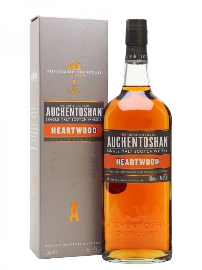 Auchentoshan Heartwood este fabricat din whisky scotch triplu distilat, care a fost maturizat atât în butoaiele de Sherry Oloroso, cât È™i în butoaiele bourbon, ceea ce duce la o expresie foarte bine echilibrată. Auchentoshan Heartwood are o aroma de cappuccino proaspăt si o dulceață uÈ™oară, care se dezvoltă într-un gust bogat È™i fructat.