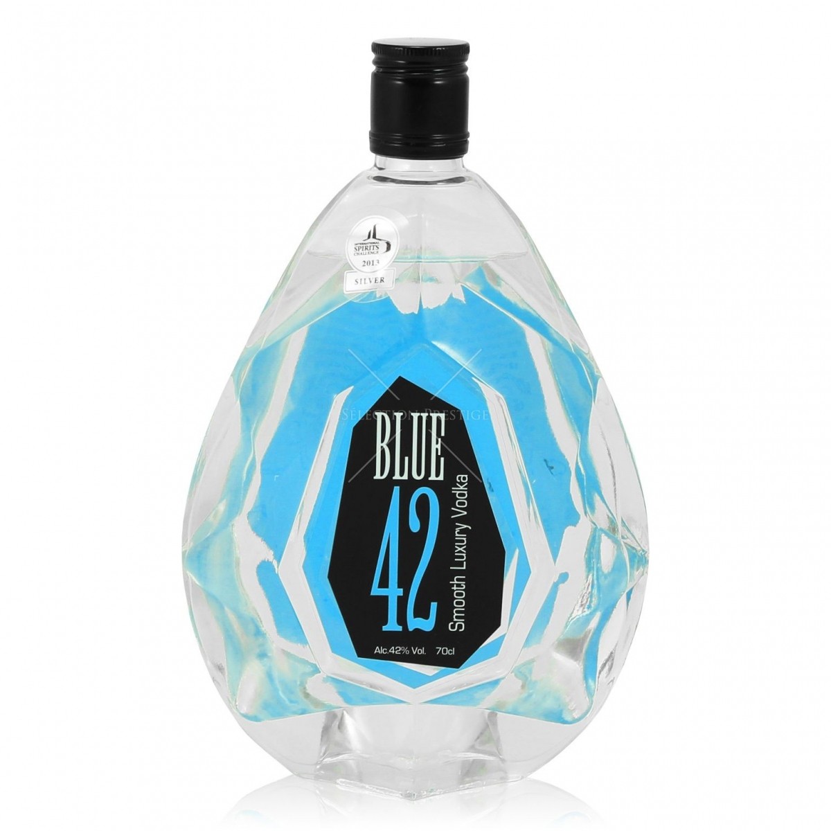 VODKA Blue 42 are o textura limpede si blanda, bogata si corpolenta. Rachiul este realizat exclusiv din cereale englezesti si este distilat si filtrat de trei ori. Sticla de vodca are forma de diamant si seamana puternic cu un cristal.