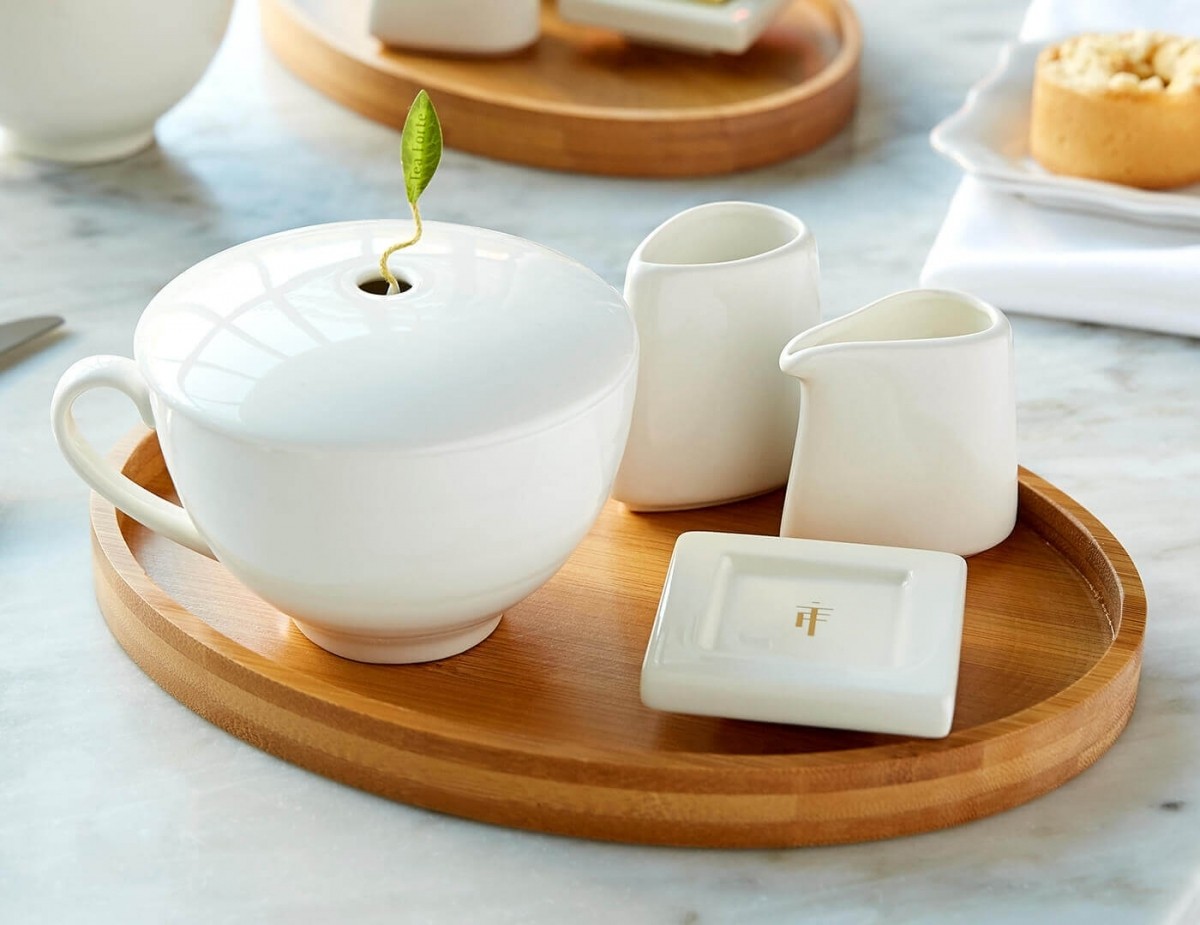 O colectie eleganta care contine toate accesoriile de care ai nevoie pentru a savura cu placere ceaiurile Tea Forte. Toate articolele sunt sigure pentru masina de spalat vase, cu exceptia tavii ovale din bambus.