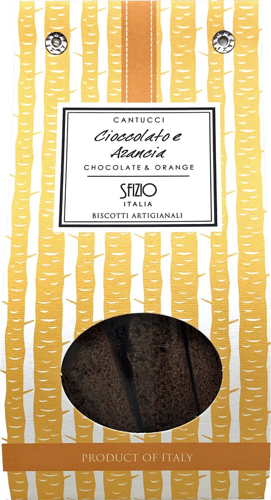 Cantucci de ciocolata si portocale reprezinta una dintre cele mai elegante combinatiile clasice de arome. Folosim cea mai buna ciocolata impreuna cu cojile de portocale confiate italiene si extractul pur de portocale pentru a produce aceasta senzatie de gust pur armonica.