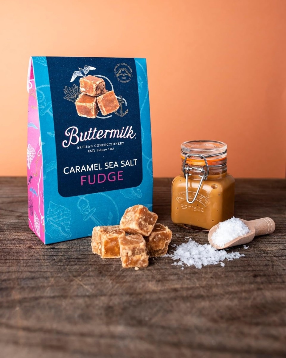 Buttermilk, un brand artizanal cu traditie din inima Cornwall-ului (Marea Britanie), este renumit pentru dulciurile sale cremoase, lucrate cu grija si pasiune din 1964. Fudge-urile lor sunt apreciate pentru textura moale si bogata, iar fiecare reteta reflecta o combinatie atenta de ingrediente de calitate si inspiratie moderna.