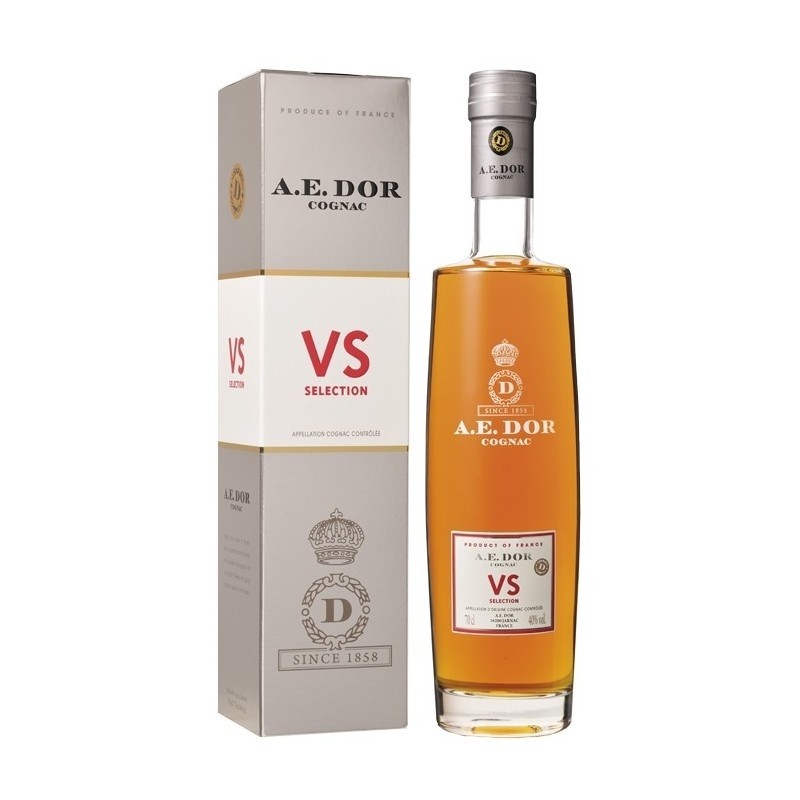 Cognac-ul A.E.DOR VS este maturat in pivinita umeda fiind produs dintr-o selecţie de struguri ce fac parte din soiul Borderies şi Fins Bois.