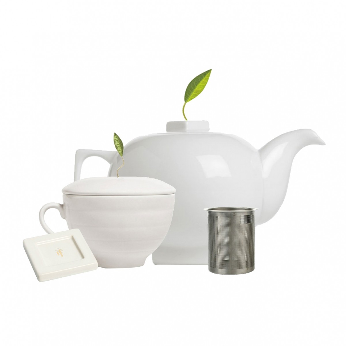 Design simplu, dar rafinat, din portelan alb ca prima zapada. Capacul ingenios lasa loc piramidei de ceai sa-si arate frunza decorativa.