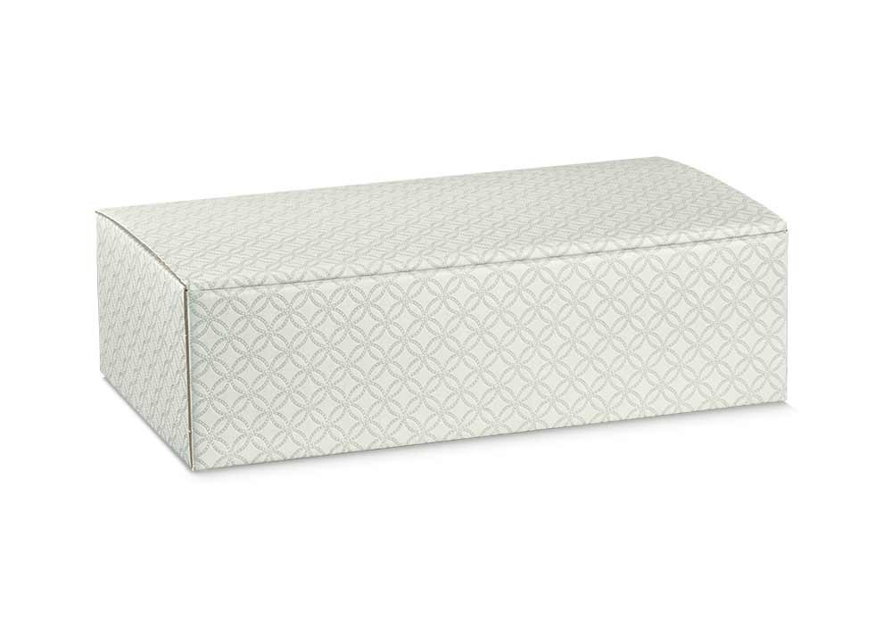 O cutie perfecta pentru orice ocazie si sezon, facuta din carton premium de culoare crem si ornament deosebit, cu manere textile.