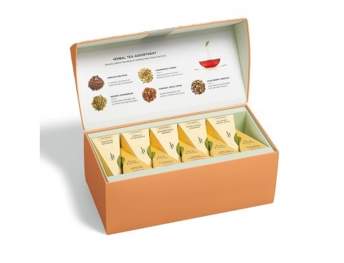 Sortimente de ceai incluse: African Solstice, Apricot Amaretto, Belgian Mint, Blueberry Merlot, Chamomile Citron, Cherry Cosmo, Chocolate Fondue, Citrus Mint, Ginger Lemongrass, Harvest Apple Spice, Hibiscus Blossom, Lemon Lavender, Mango Citron, Mojito Marmalade, Purify, Radiance, Raspberry Nectar, Turmeric Chai, Wild Berry Hibiscus, Winter Chai.