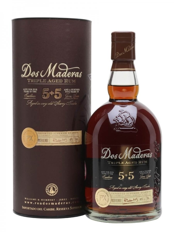 DOS MADERAS PX 5YO+5YO este un amestec de romuri îmbătrânite din Guyana È™i Barbados, care sunt expediate la Williams & Humbert în Spania. Romurile sunt apoi amestecate È™i îmbătrânite încă 5 ani în butoaie ex-sherry (3 ani în Palo Cortado È™i 2 în Pedro Ximenez), oferind produsului finit o complexitate fabuloasă.