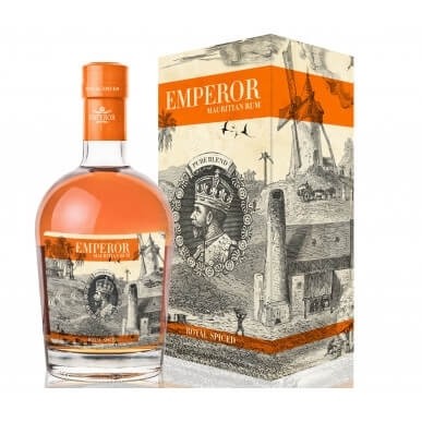 Emperor „Royal Spiced Rum” este o variantă a romului Emperor Heritage, îmbunătățită cu mirodenii, cu arome delicate de cardamom, scorÈ›iÈ™oară È™i anason. Condimentele selectate cu grijă au fost macerate atât în melasă, cât È™i în sprit de trestie pură, în beciurile St Michel de Fronsac din Bordeaux - FranÈ›a, înainte de a fi amestecate cu ediÈ›ia romului „Emperor Heritage”.