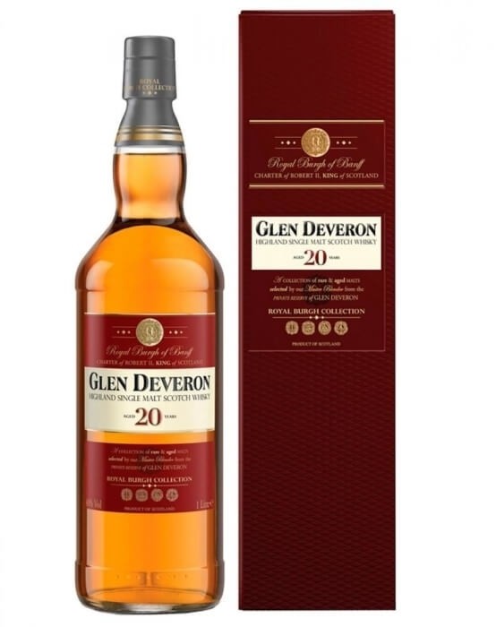 Glen Deveron 20YO Malt provine de la distileria Macduff din Scotia si a fost lansat initial pentru piata de vanzare cu amanuntul Travel. Whisky-ul s-a maturizat in butoaie bourbon si sherry. Glen Deveron 20YO are o aroma de fructe exotice, cereale si alune, si un finisaj elegant si persistent.