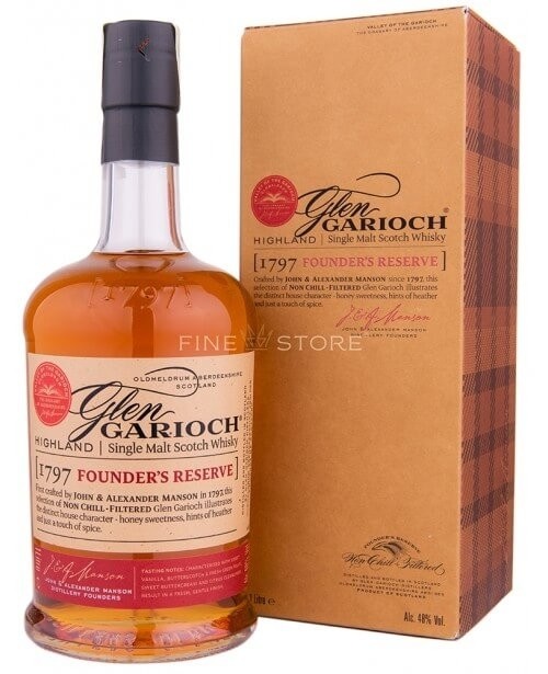 Founder’s Reserve cinsteste fondatorii distileriei si cei peste 200 de ani de excelenta si maiestrie cu care producatorii imbuteliaza fiecare sticla ce poarta numele casei. Fratii John si Alexander Manson au pus bazele distileriei Glen Garioch in anul 1797. Pastrand traditia, sortimentul este invechit pe o perioada de 8-10 ani in butoaie din lemn de stejar american, folosite anterior pentru bourbon si sherry.