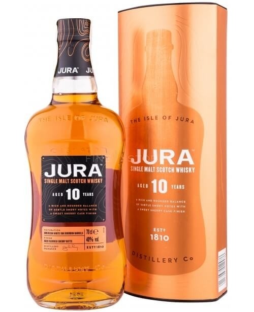 În fiecare whisky Isle of Jura 10 YO se află un strop din pasiunea È™i din căldura comunității din care face parte, pe lângă ingredientele sale de bază: apă, orz È™i drojdie. Isle Of Jura 10 ani e distilat în celebrele alambicuri înalte ÅŸi trece printr-un proces lung de maturare în foste butoaie de bourbon. Pentru a desăvârÈ™i licoarea, Isle Of Jura 10 ani este maturat final în butoaie excepÈ›ionale de Sherry Oloroso, aduse special din Spania.