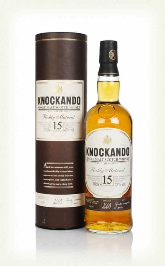KNOCKANDO 15YO, creat de distileria Knockando din Speyside. a fost maturat într-o combinaÈ›ie de butoaie Sherry È™i bourbon. Whisky-ul Knockando este una dintre componentele majore ale renumitului J&B.