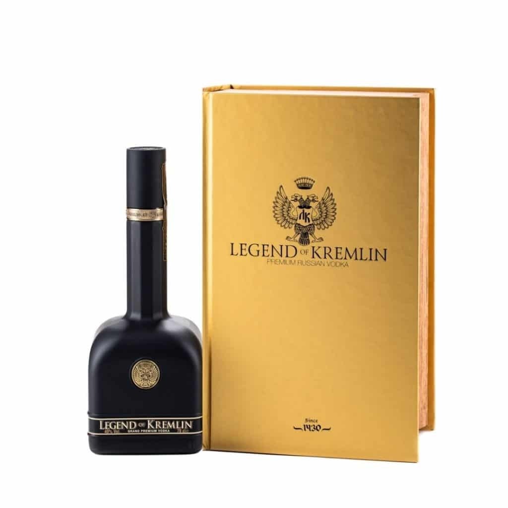 Vodca LEGEND OF KREMLIN GOLD BOOK este produsă dintr-un alcool special din cereale premium si are alcool pur 95,5%. Alcoolul este combinat cu o apă pura, al carui izvor aparÈ›ine unei distilării, ce încă mai foloseÈ™te recipiente de cupru pentru stropirea alcoolului înainte de îmbuteliere. Vodca „Legenda Kremlinului” a câÈ™tigat 8 premii „Grant Prix”, 9 medalii de aur la competiÈ›ii externe È™i a obÈ›inut titlul oficial de „Cel mai cunoscut furnizor din Kremlin”.