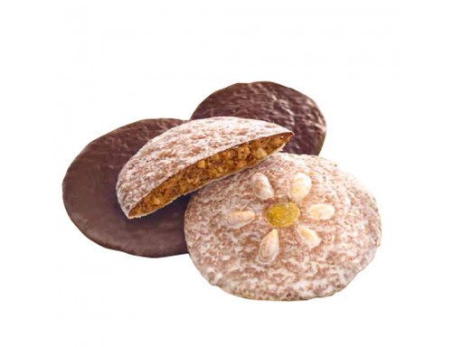 Ingrediente: faina de grau, faina de secara, zahar, sirop fructoza-glucoza, miere, galbenus de ou praf, agenti de afanare: bicarbonat de amoniu, bicarbonat de sodiu, amestec de mirodenii, aroma vanilie. Poate contine urme de NUCI, OU, SEMINTE DE SUSAN si SOIA.