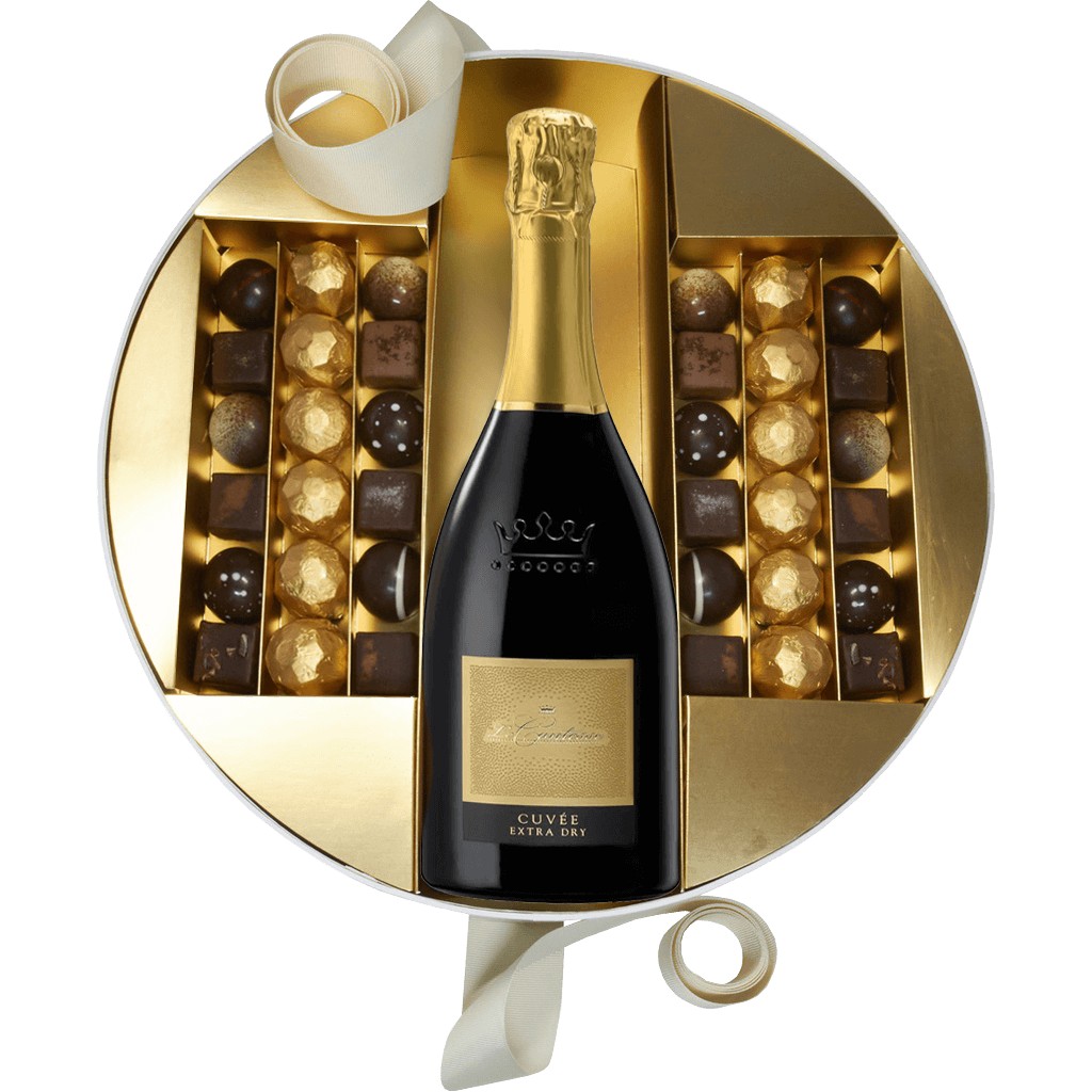 Un pachet cadou perfect pentru cei care apreciaza rafinamentul si dulcele vietii este aici, gata sa incante simturile si sa aduca un zambet pe buze. Acest pachet cadou exceptional contine o selectie delicioasa de ciocolata si o sticla de spumant pentru a sarbatori momentele speciale cu eleganta.