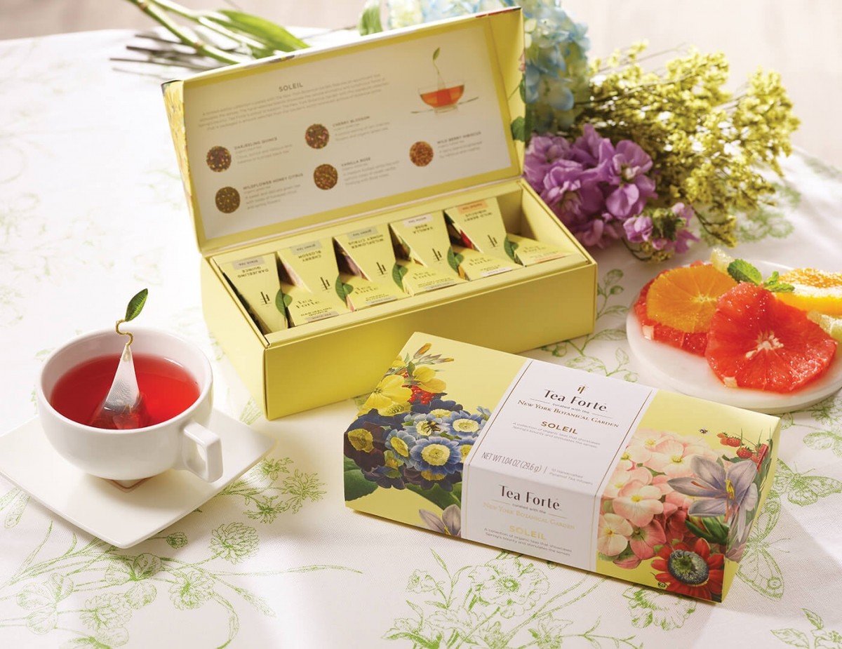 Inspirată de soarele cald de primăvară care hrăneÈ™te fructele, florile È™i frunzele de ceai din cele mai bune amestecuri, colecÈ›ia noastră Soleil, în ediÈ›ie limitată, în parteneriat cu Grădina Botanică din New York, prezintă un sortiment care stimulează simÈ›urile. Amestecurile selectate manual prezintă aromele naturale È™i somptuoase a recompensei primăverii. Tea Forté susÈ›ine cu mândrie Grădina Botanică din New York.