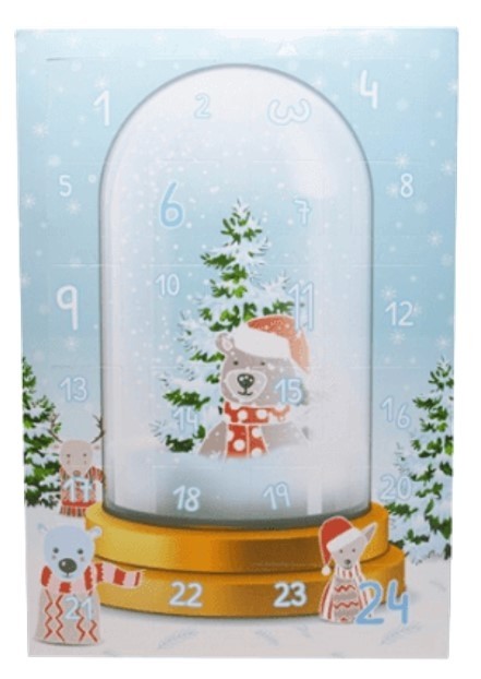 Calendar de Craciun cu 24 de praline din ciocolata belgiana Valentino, ambalate individual.