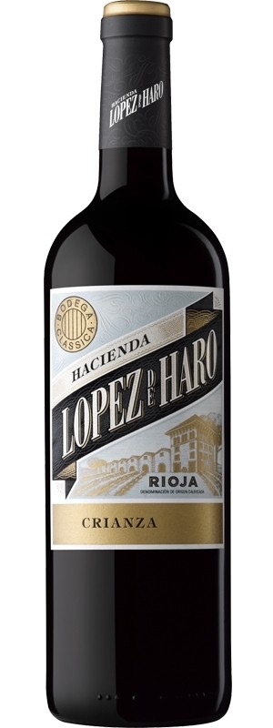 Hacienda López de Haro Crianza este un vin rotund si expresiv, produsul amestecului armonios de Tempranillo, Garnacha È™i Graciano. Acesta este îmbătrânit în butoaie de stejar francez È™i stejar american, în egală măsură. Gustul neted È™i echilibrat, îi va uimi pe iubitorii de Rioja, unde aromele fructelor È™i ale îmbătrânirii coexistă în armonie.