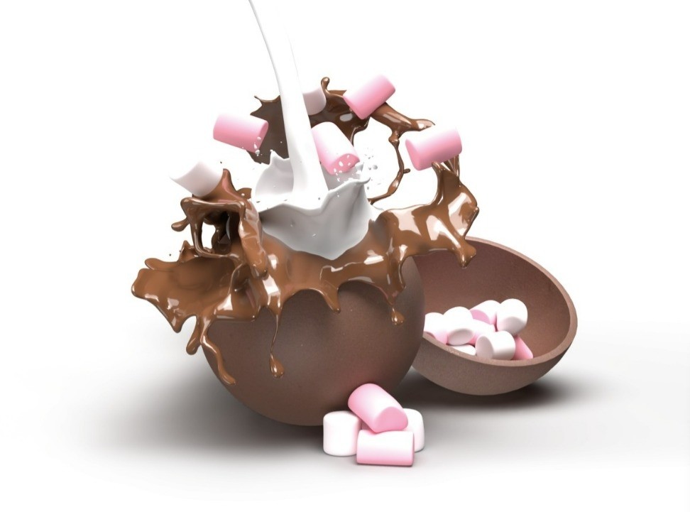 Zahar, unt de cacao, marshmallows (13%), emulgator: lecitina de floarea soarelui, aroma naturala.