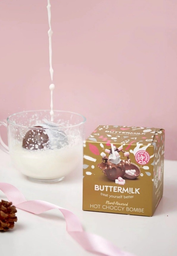 Atentie: sfera Buttermilk nu este o simpla ciocolata. Este o bomba de fericire. O arunci in laptele cald, se topeste, elibereaza bezelele ninja, si in 10 secunde ai cea mai buna scuza sa te bucuri ca iarna exista.