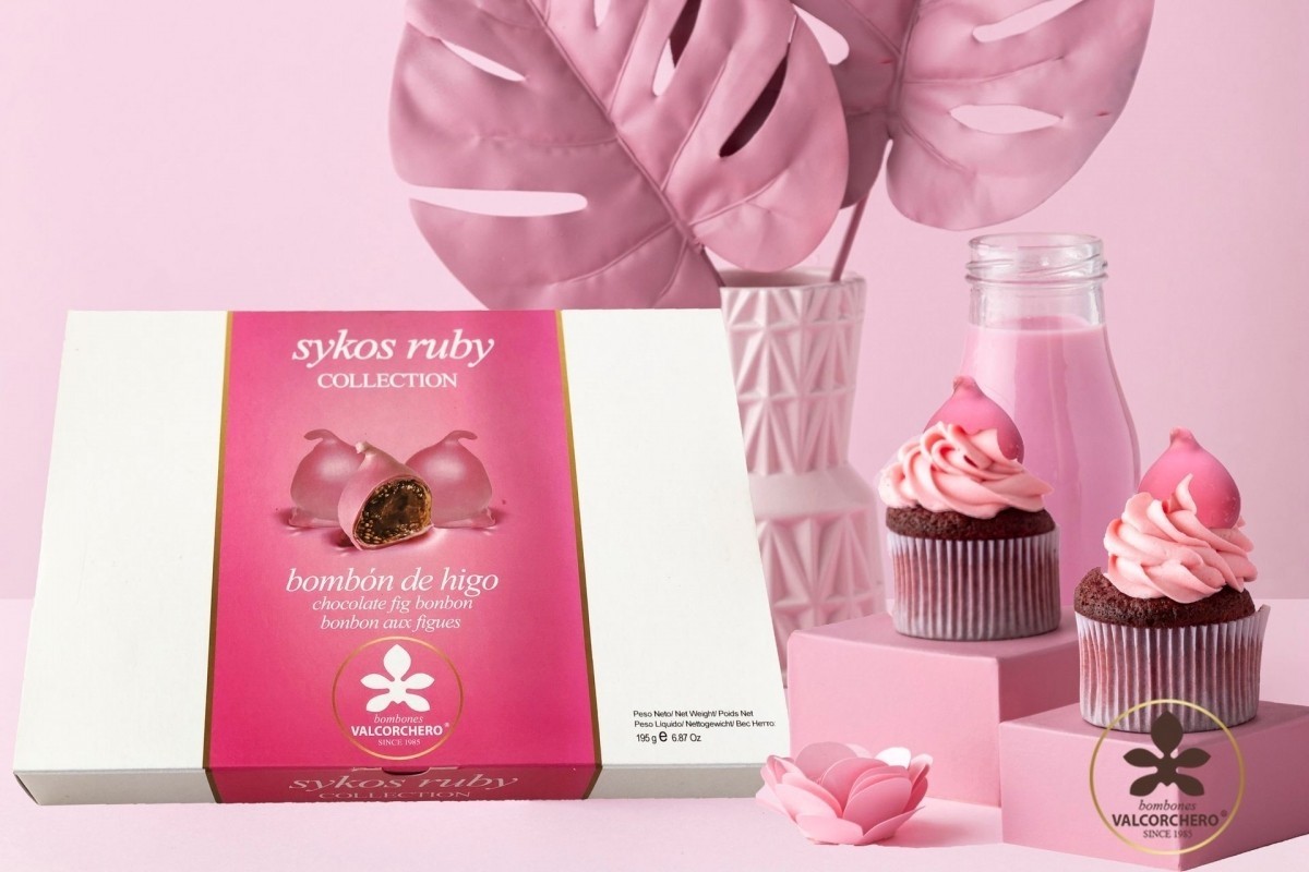 „Colectia Sykos Ruby” apartine Colectiei de ciocolata Sykos. Creata cu grija de maestri ciocolatieri, Bombones Valcorchero foloseste doar ingrediente de cea mai buna calitate. La Bombones Valcorchero, smochinele sunt selectate cu atentie si manual. Smochinele in ciocolata Ruby Sykos Valcorchero 165g sunt smochine umplute cu crema de alune si acoperite cu un strat subtire de ciocolata roz (ruby). Fara gluten. In cutie sunt cate 10 bucati ambalate individual.
