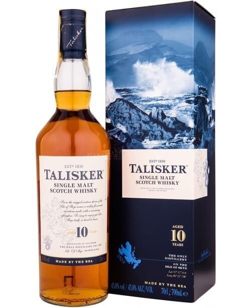 Talisker este singurul brand de whisky creat exclusiv pe ţărmul insulei Skye, iar caracterul marin se reflectă din plin în profilul aromatic al tuturor single malt-urilor din gamă. Mirosul ÅŸi gustul acestui sortiment standard ne poartă cu gândul la peisaje sălbatice de pe coasta scoÅ£iană, fiind compania perfectă a amurgurilor petrecute în tihnă, acasă. Producătorii recomandă savurarea sortimentului simplu, fără gheaţă sau apă, pentru a-i simÅ£i din plin caracterul special ÅŸi buchetul îndrăzneÅ£, învăluit în accente delicate de fum. Asemeni celorlalte sortimente din gamă, Talisker 10 ani este câÅŸtigător a numeroase premii internaÅ£ionale.