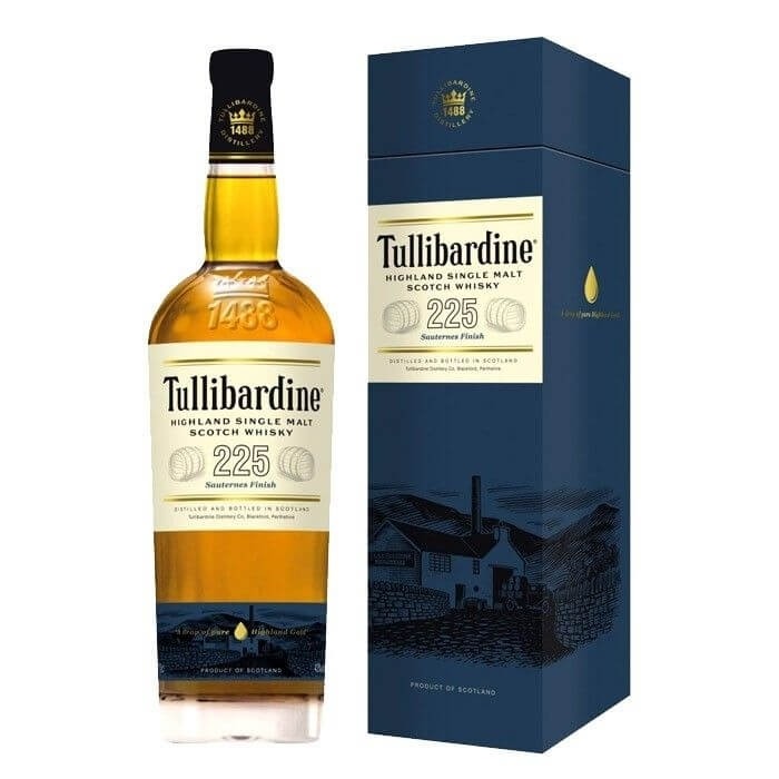 Distileria si beraria Tullibardine este una dintre cele mai vechi din Scotia. Asa cum si numele indica, dupa o lunga maturare in butoaie de stejar de bourbon, Tullibardine 225 Sauternes Finish este transferat pentru o extra maturare in butoaie de 225 de litri, provenind de la Chateau Suduiraut, un Premier Grand Cru classé ce produce vin dulce in regiunea Sauternes din Bordeaux. Din aceasta extra maturare provin notele citrice si cele de ananas si coaja de portocala din finalul lung.