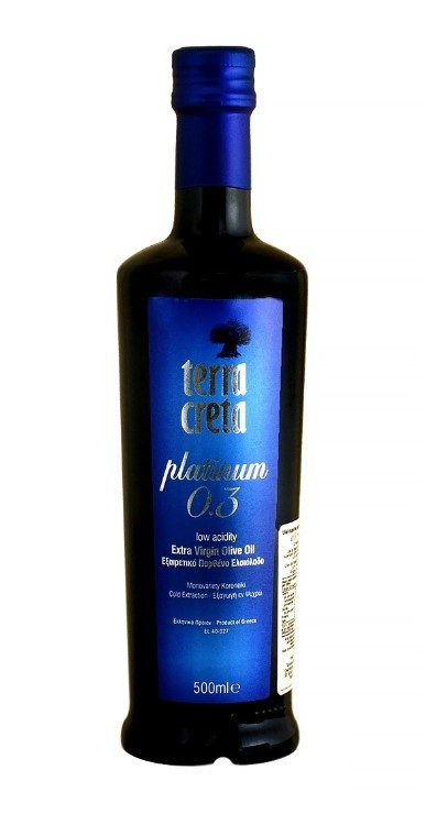 Uleiul extra virgin de masline Terra Creta Estate Platinum 500 ml este un produs cretan de origine controlata, realizat 100% din soiul de masline Koroneiki, cultivate si culese in mod traditional in regiunea Kolymvari. Acest ulei are o aciditate extrem de scazuta, este bogat in antioxidanti si in special polifenoli, renumiti pentru proprietatile lor de combatere a radicalilor liberi. Gustul proaspat, natural si aroma delicat fructata, cu note de pere si migdale a acestui ulei sunt perfecte pentru a da un plus de savoare salatelor de vara, branzeturilor maturate, spaghetelor, sau altor aperitive si feluri principale.