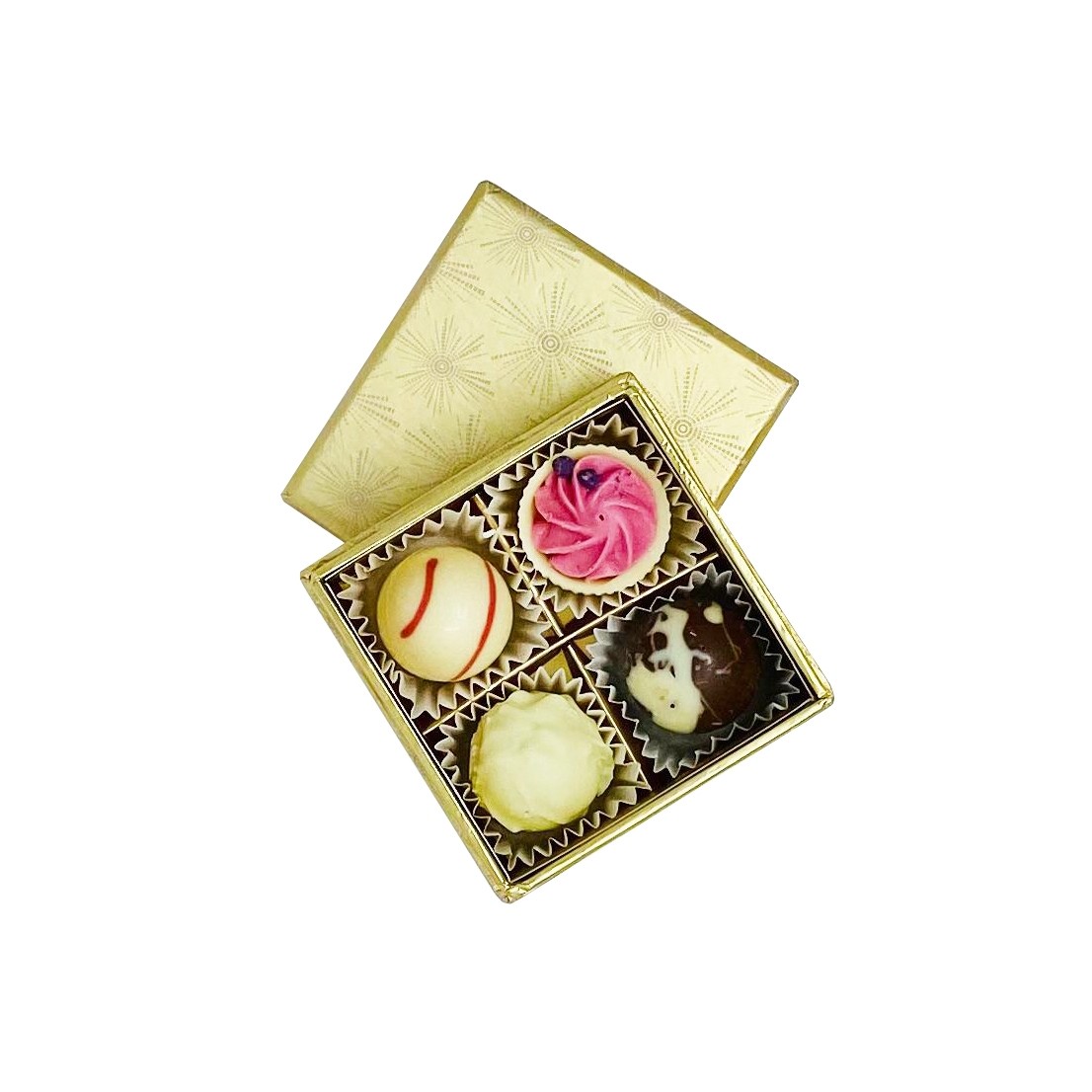 Cutie cu 4 praline de ciocolata belgiana Valentino 7x7x3,3cm.